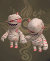 | 生まれた時から両手が繋がっており、そのままの姿でミイラにされてしまった。長い年月をかけ大地の霊気が浸潤し、霊魂が再び体に戻り復活を遂げる。性格は子供と変わらず、いたずら好き幼稚なモンスターである。 |