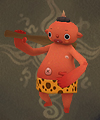 | 全身真っ赤な皮膚をしており額に茶色い角が一本、左側だけ八重歯をはやした鬼。腰には虎皮を巻きつけ、手には棍棒を持っている。ぼうっとした様子からは非常に穏やかな雰囲気が感じられるが実は天性の破壊狂。生物を見かけただけで血がうずく。 |